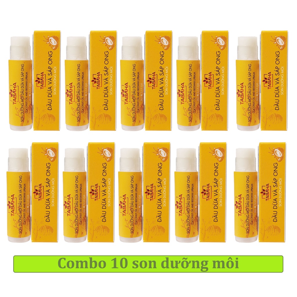 Giới thiệu Bộ 10 cây son dưỡng dầu dừa sáp ong tabaha 5g tiết kiệm