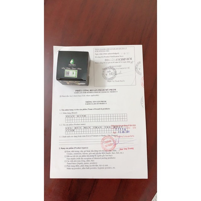 - Tên sản phẩm theo giấy công bố: Gel hút mụn than tre hoạt tính