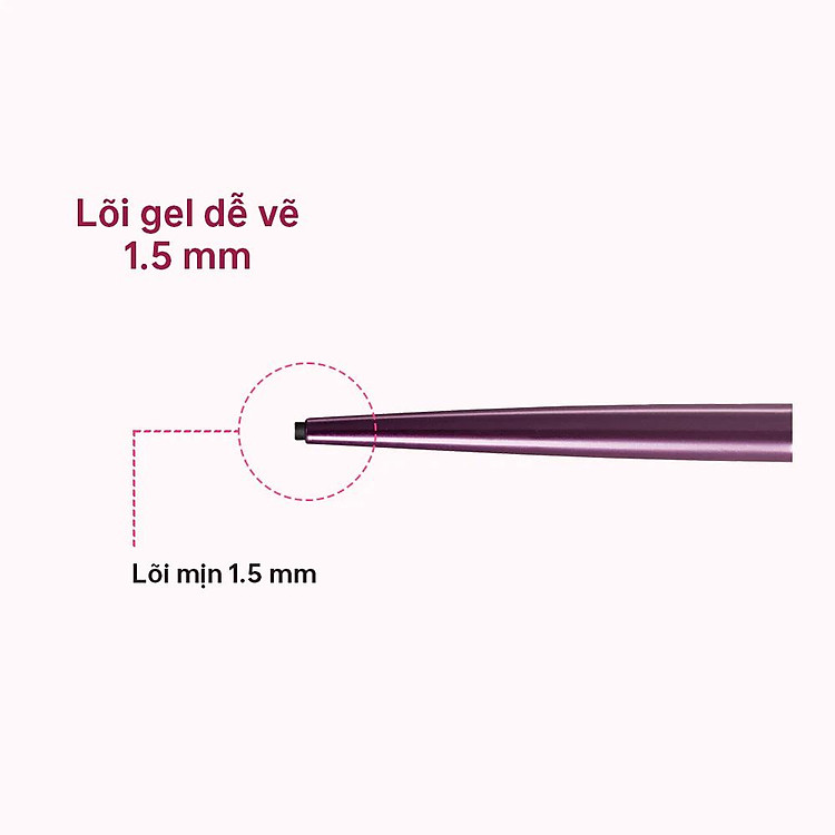 Lõi dạng gel có độ dày chỉ 1,5mm siêu mềm mịn, dễ kẻ, chống cọ xát, không gây đau rát mí mắt, dễ dàng kẻ sát chân mi hoặc tạo kiểu đuôi mắt sắc nét, chính xác. Bút kẻ mắt có độ bền màu cao, giúp chống lem, chống trôi suốt cả một ngày dài.