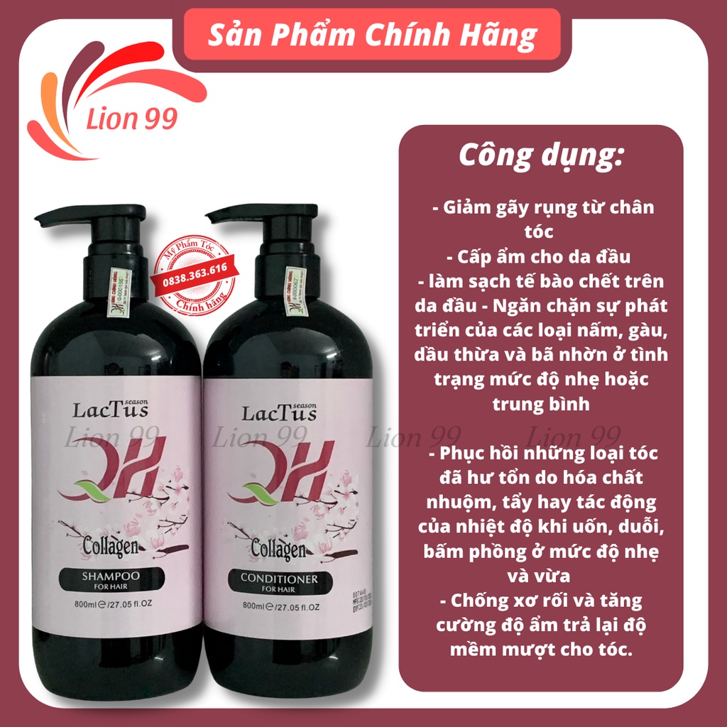 Giới thiệu Cặp dầu gội xả collagen QH Lactus season giảm rụng tóc 800ml