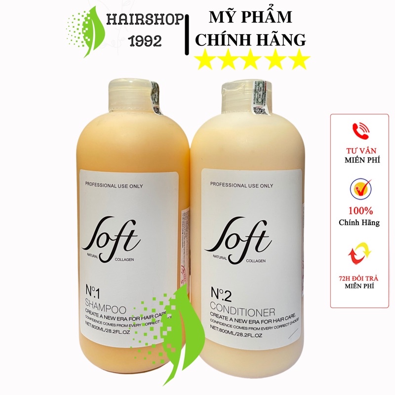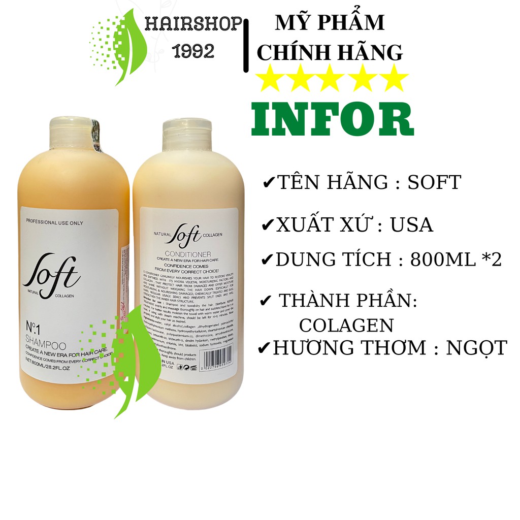 Giới thiệu Dầu gội xả SOFT Nature Collagen Ngừa Gầu Nấm, Xù, Gãy Ngọn, Tái Tạo Cấu Trúc Tóc 800mlx2
