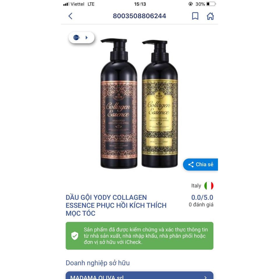 Dầu cặp gội xả YODY COLLAGEN ESSENCE - ITALY 800ml