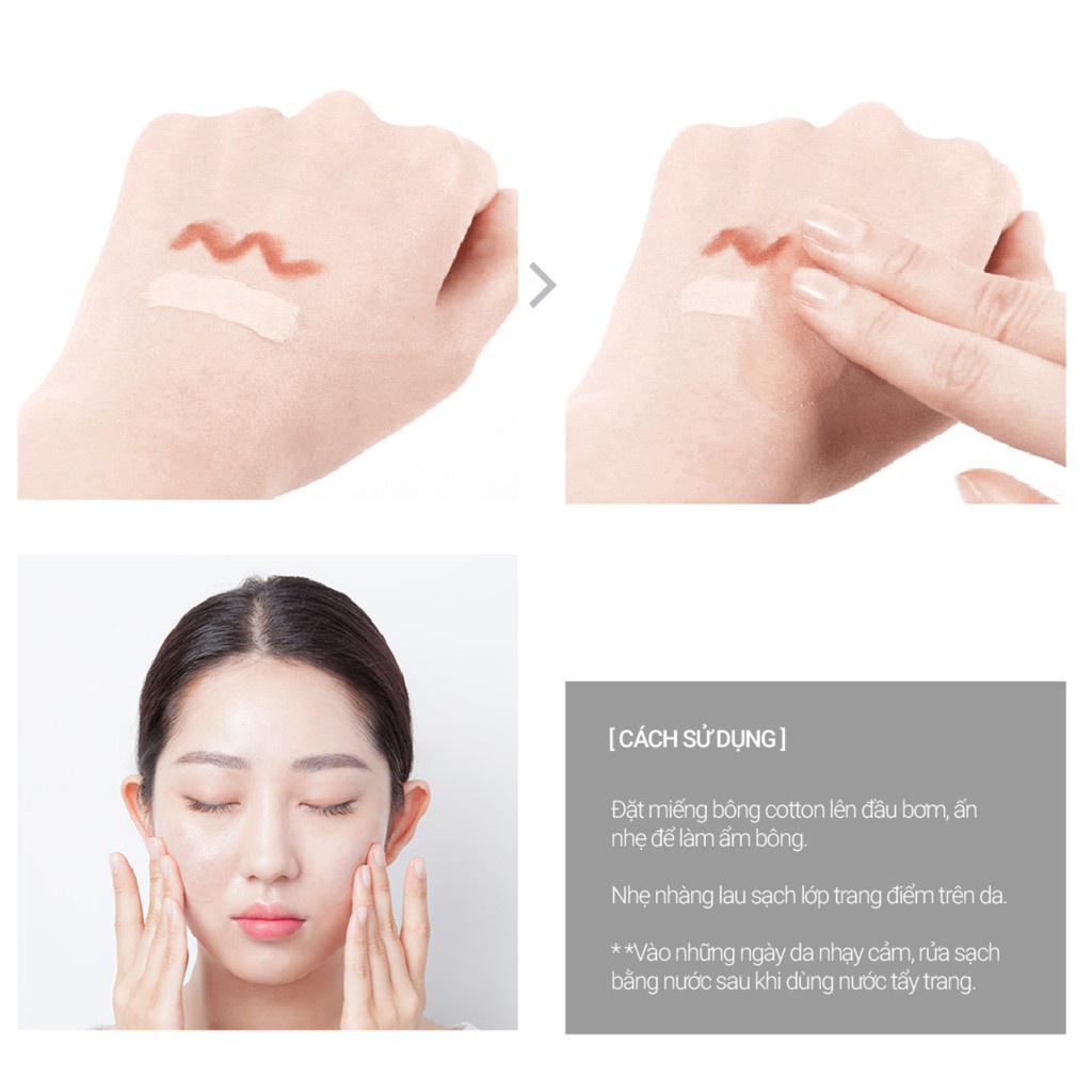 Đặc biệt, em này còn rất được lòng các nàng nhờ khả năng làm sạch cả những lớp make up “cứng đầu” như son lì hoặc mascara waterproof… mà không làm cay mắt hay kích ứng da.