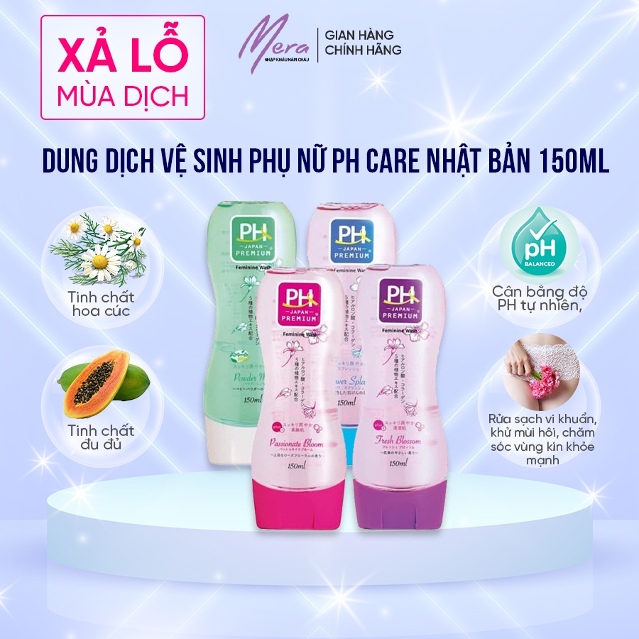 - Với công thức PH = 5, tăng cường các chiết xuất tinh chất thiên nhiên, tinh chất hoa cúc, đu đủ, không chứa chất kích ứng mạnh, PH Care phù hợp để sử dụng hàng ngày mà không sợ khô rát.