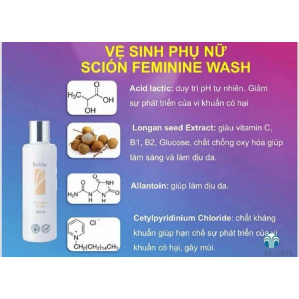 Dung dịch vệ sinh phụ nữ Cao cấp Scion Feminine Wash Nuskin mang lại sự tự tin, quyến rũ, xóa tan nỗi lo mắc bệnh phụ khoa của phái đẹp.
