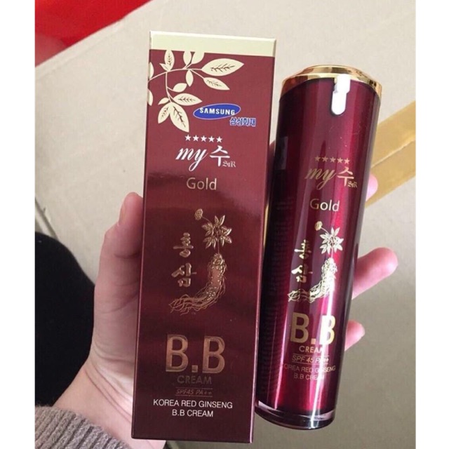 ☑ Kem BB Sâm đỏ Cream My Gold, Đây là không những là dòng kem trang điểm hội tụ những ưu điểm của một kem BB mà còn kết hợp với thành phần Nhân sâm, chiết xuất dâu tằm, Vitamin A, E,…và thành phần chống nắng cao SPF40 PA++ tạo lên một kem BB với chức năng dưỡng da, tái tạo da và bảo vệ da bởi yếu tố môi trường ưu việt, đó chính là lý do BB sâm đỏ My Gold đang rất được ưa chuộng tại Hàn Quốc và các nước Châu Á.