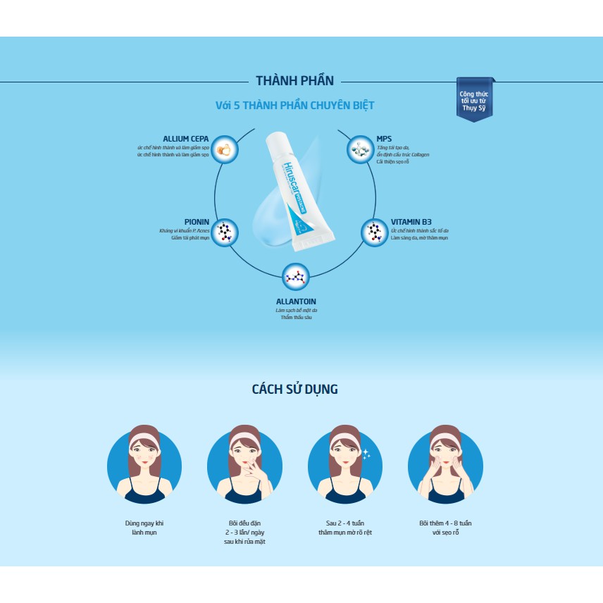 Hiruscar Post Acne, gel chăm sóc mụn thâm và sẹo mụn là sản phẩm của công ty Medinova - Thụy Sỹ, một trong những tập đoàn dược phẩm dẫn đầu trong lĩnh vực chăm sóc da và sẹo. - Với công thức ba trong một độc quyền của Pionin, MPS, Allium Cepa và Vitamin B3, Hiruscar Post Acne giúp làm sáng vết thâm mụn, cải thiện thâm nhanh sau 03 tuần sử dụng, đồng thời ngăn ngừa tái phát mụn tại cùng vị trí. - Hiruscar Post Acne được bào chế phù hợp cho da nhờn, da dễ bị mụn và đã được chứng minh an toàn cho mọi loại da bằng các nghiên cứu da liễu, thực hiện bởi viện nghiên cứu Dermscan – Pháp.