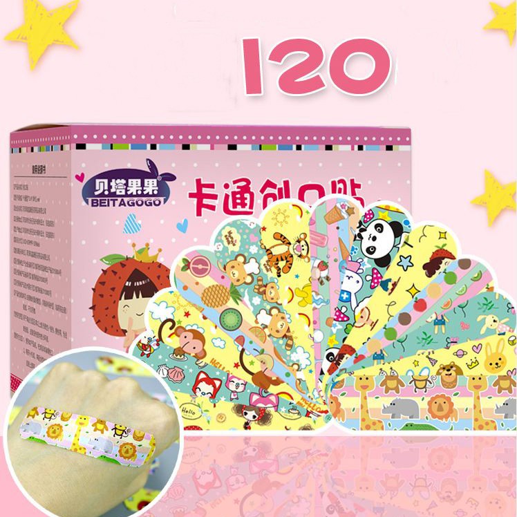 Giới thiệu [HÀNG CÓ SẴN] Hộp 120 miếng băng dán cá nhân họa tiết hoạt hình dễ thương