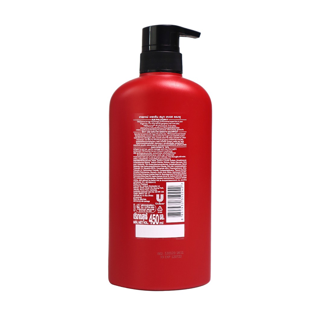 Giới thiệu Dầu gội tái tạo tóc hư tổn TRESEMME Argan Thái Lan 425ml - chai màu đỏ - Keratin smooth