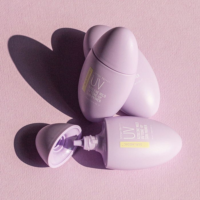 1. Màu tím: Kem chống nắng Sur.Medic+ nâng tông, che khuyết điểm Azulene Mild UV Tone-Up Sun Primer SPF50+/PA++++ 50ml