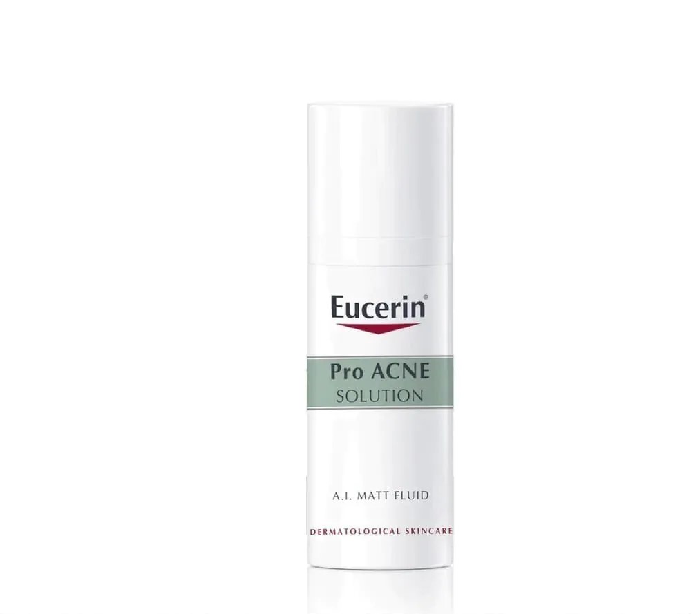 – Sử dụng Kem Dưỡng Giảm Mụn Eucerin ProAcne A.I Matt Fluid vào mỗi sáng và tối