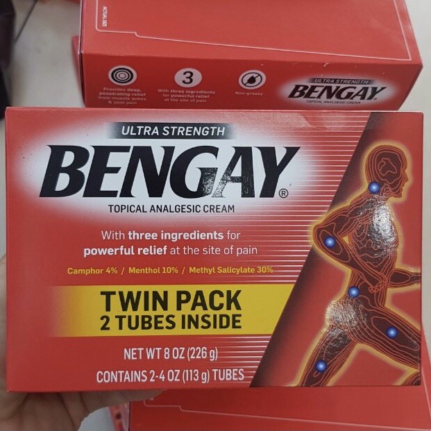 + Kem xoa bóp Bengay được người tiêu dùng trên toàn thế giới đánh giá rất cao. Giúp tác động sâu vào từng bó cơ, giúp chấm dứt các cơn đau một cách nhanh chóng như viêm khớp, đau lưng, cơ bắp và đau khớp.