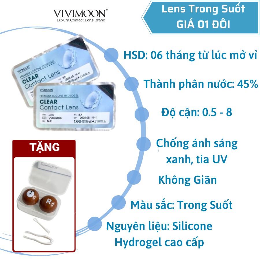 Kính Áp Tròng Trong Suốt VIVIMOON ICE CLEAR - Lens Cận Trong Suốt Chính Hãng Hàn Quốc