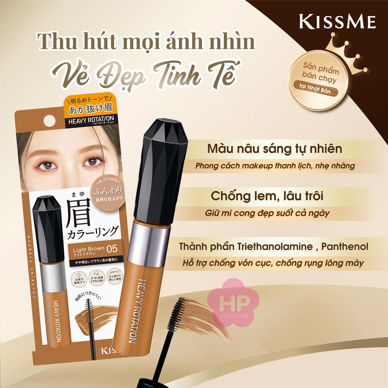 Mascara Chải Đổi Màu Lông Mày Chống Trôi Siêu Bền Màu Nâu Sáng Kissme Heavy Rotation Coloring Eyebrow Ex #05 8 G