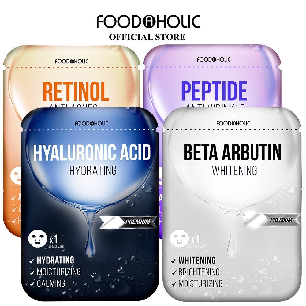 Giới thiệu Mặt Nạ Foodaholic [MIẾNG LẺ] Hoạt Chất Vàng Retinol, Peptide, Hyaluronic Acid, Beta Arbutin Premium Foodaholic 23ml