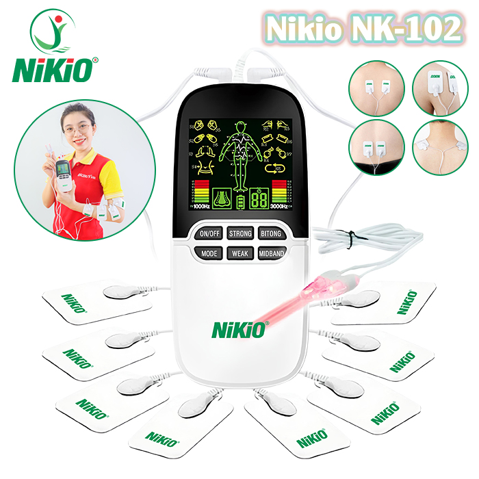 Nikio NK-102 là dòng máy matxa xung điện thế hệ mới, được thiết kế đột phá với 8 miếng dán (số miếng dán nhiều nhất thị trường). Bạn có thể Massage nhiều vị trí trên cơ thể cùng một lúc, cho hiệu quả thư giãn tuyệt vời trong thời gian ngắn.