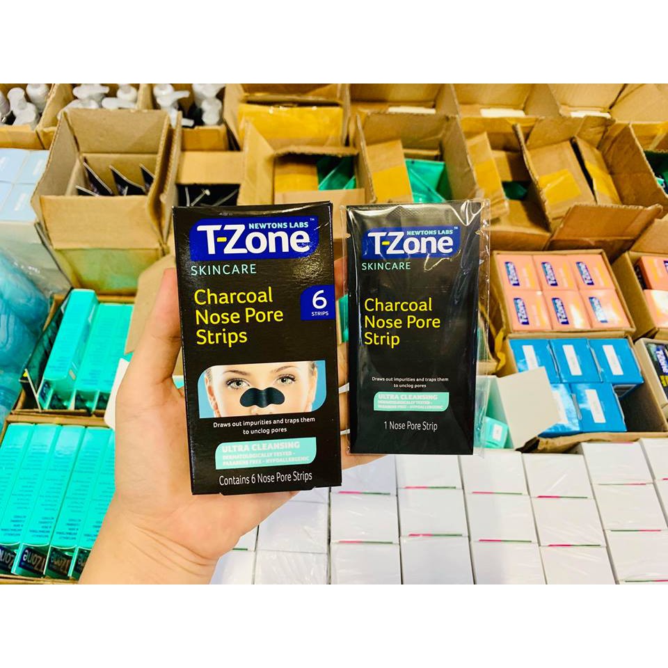 Miếng lột mụn mũi T-Zone chứa tinh dầu tràm trà tinh khiết, giúp ngăn chặn mụn và giữ da sạch, cùng với Than hoạt tính hoạt động như nam châm hút sạch bụi bẩn và dầu thừa.