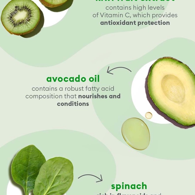 🥑 Thành phần gồm các siêu thực phẩm đúng như tên gọi như tinh dầu quả bơ nuôi dưỡng làm mềm tóc, tinh chất kiwi giàu vitamin c chống oxi hoá và tinh chất spinach nuôi dưỡng tóc toàn diện