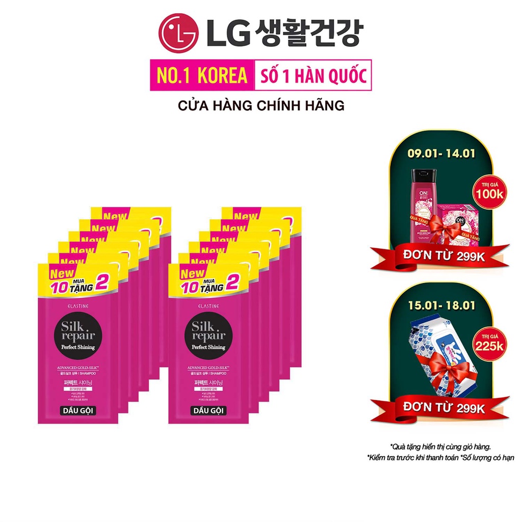 Giới thiệu [Mua 10 tặng 2] 12 gói dầu gội chăm sóc và nuôi dưỡng tóc Elastine Silk Repair - Gold Silk hương nước hoa 6ml/gói