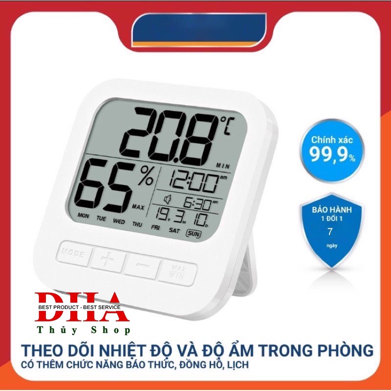 Giới thiệu NHIỆT ẨM KẾ ĐIỆN TỬ ĐO NHIỆT ĐỘ VÀ ĐỘ ẨM PHÒNG NGỦ CHO BÉ KÈM ĐỒNG HỒ CÓ CHỨC NĂNG HẸN GIỜ CHO BỐ MẸ
