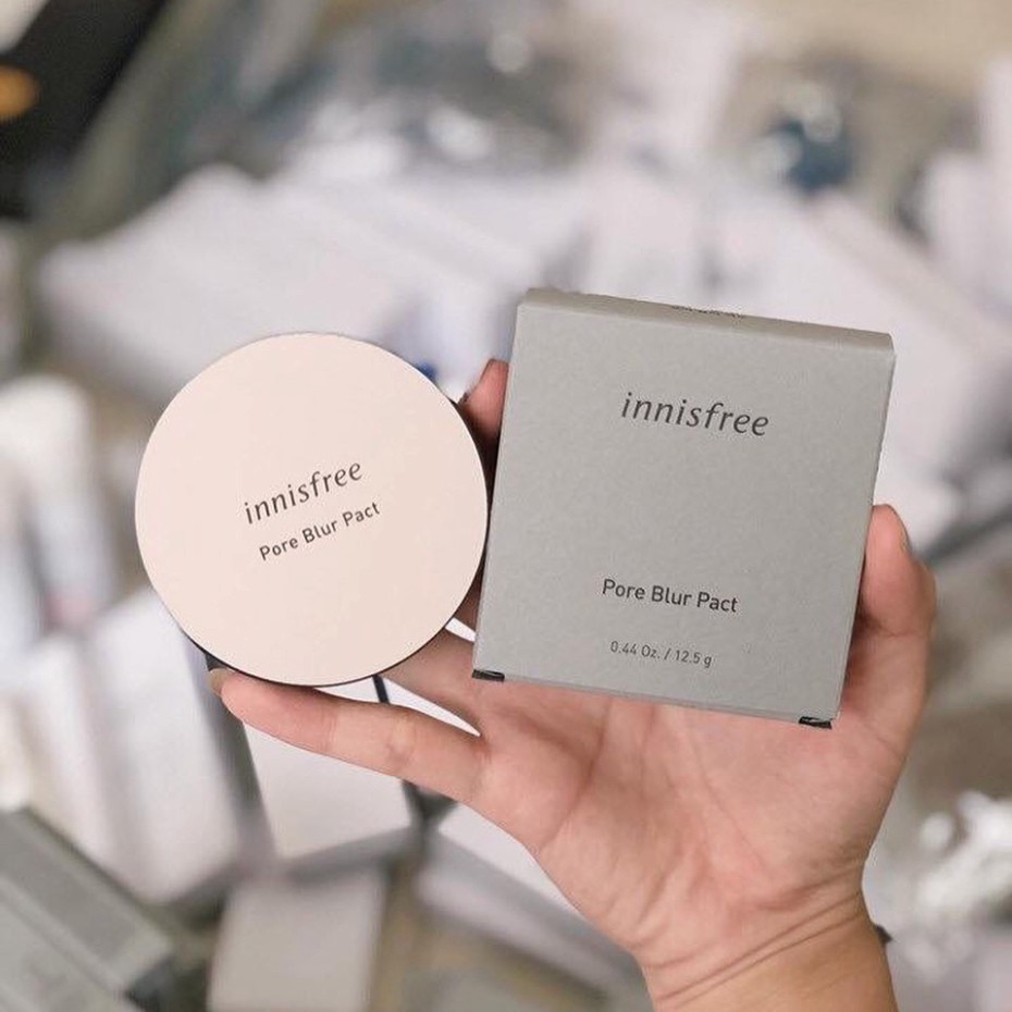 - Mách nhỏ: phủ phấn nén Pore Blur Pact Innisfree lên vùng trung tâm có nhiều lỗ chân lông, vùng chữ T dễ tiết nhờn.