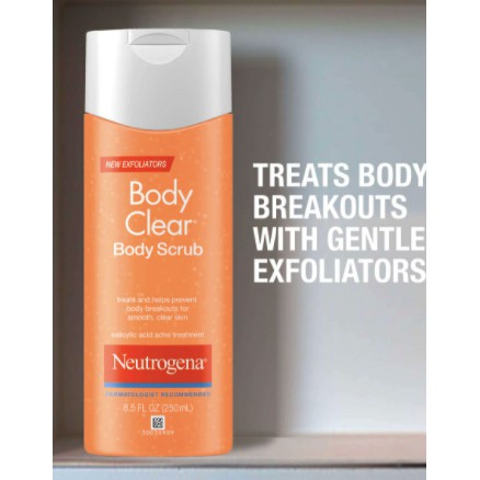 - Neutrogena Body Clear® Body Scrub giảm khả năng gây mụn giảm các vết thâm do mụn để lại trên cơ thể bạn, với thành phần Salicylic Acid sẽ giúp bạn giải quyết triệt để các vấn đề về mụn một cách hiệu quả nhất.