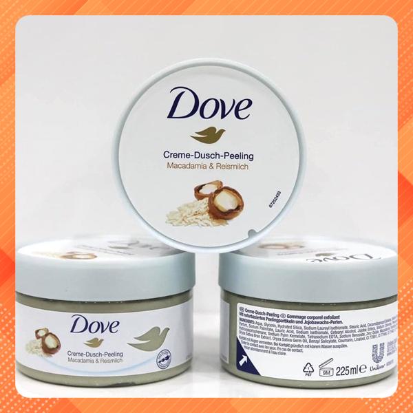 Giới thiệu Tẩy Da Chết DOVE của Đức 225ml Macadamia - sữa gạo