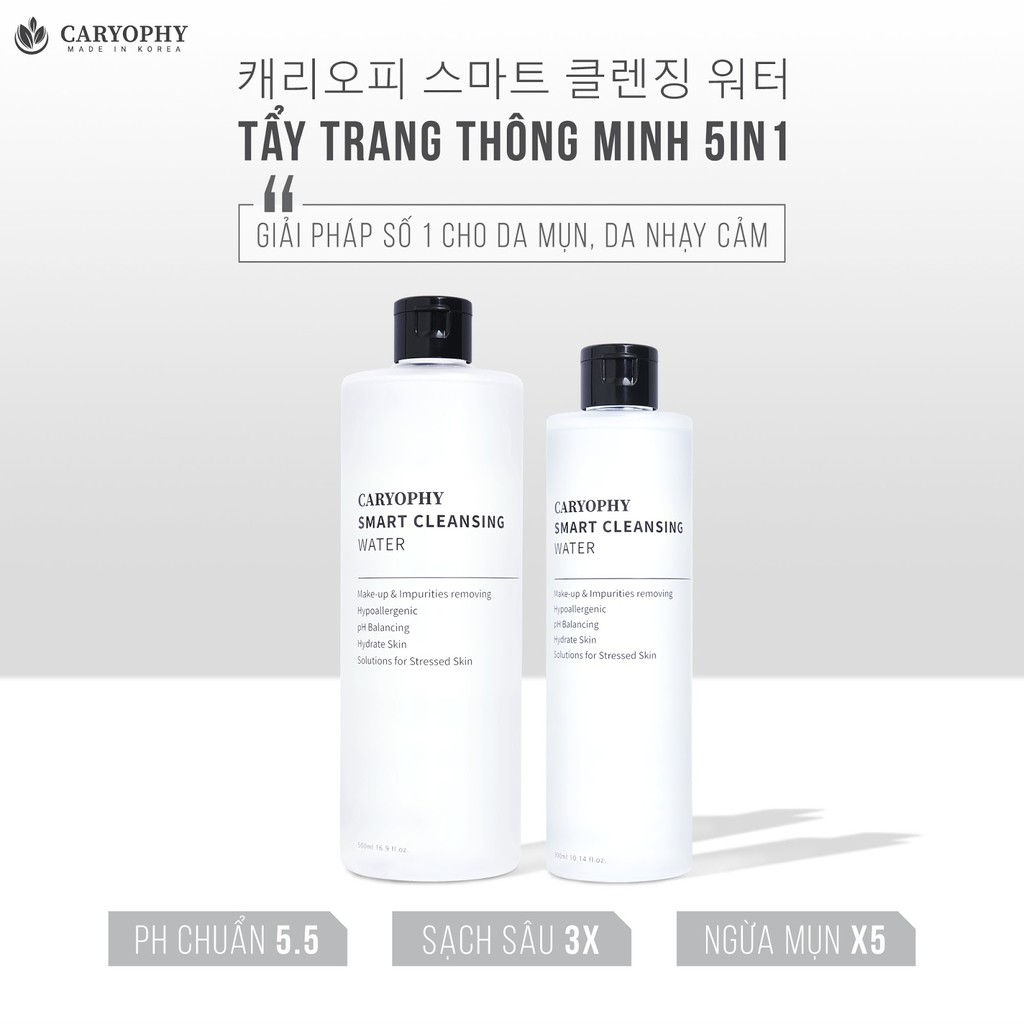 Giới thiệu Nước Tẩy Trang Cho Da Dầu Mụn, Nhạy Cảm Caryophy Smart Cleansing Water 300ml / 500ml