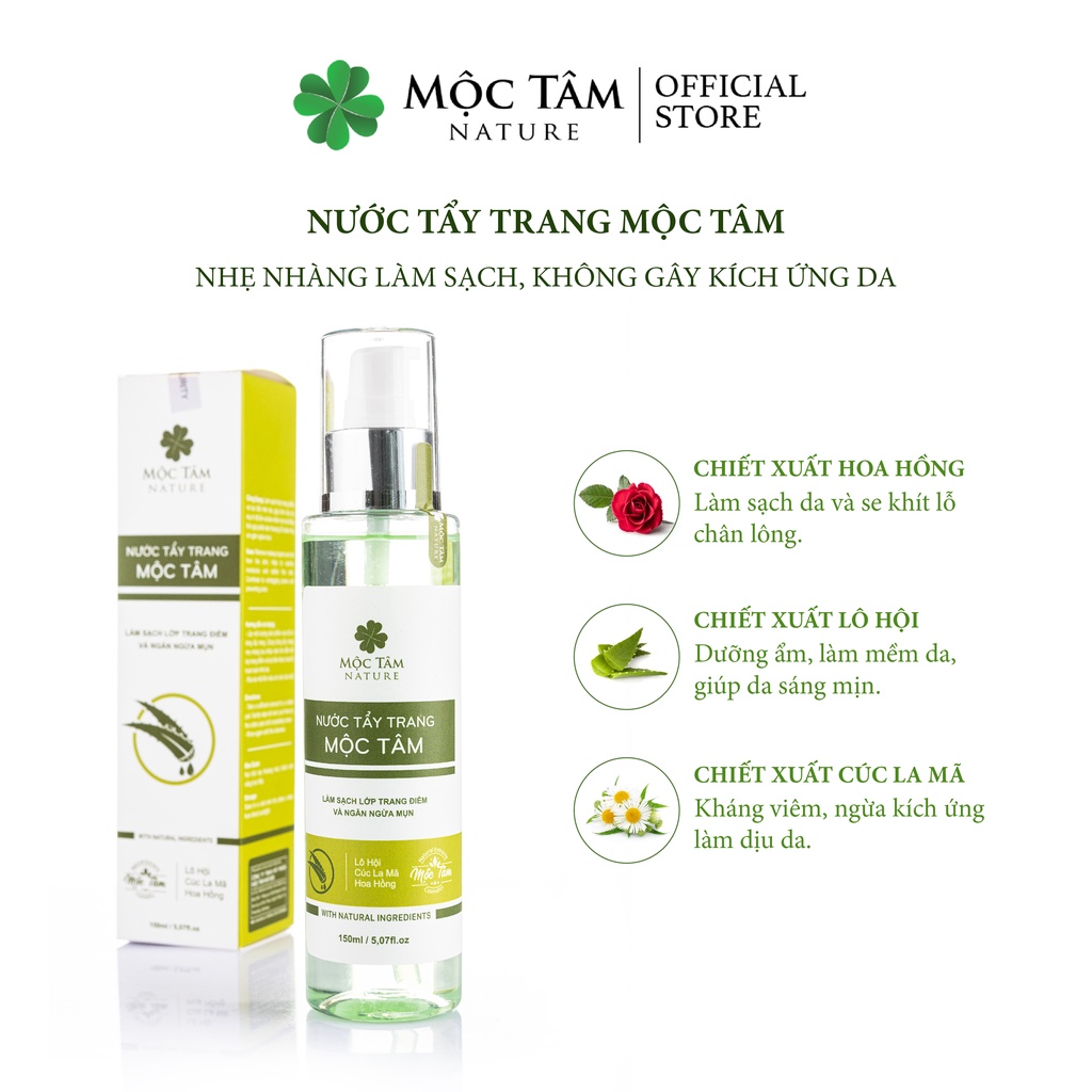 Nước Tẩy Trang Mộc Tâm 150ml - Tinh Chất Thiên Nhiên Sạch Sâu, Cấp Ẩm, Không Gây Kích Ứng Da (Mộc Tâm Nature)